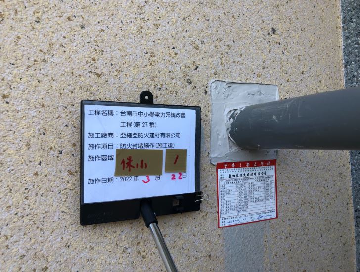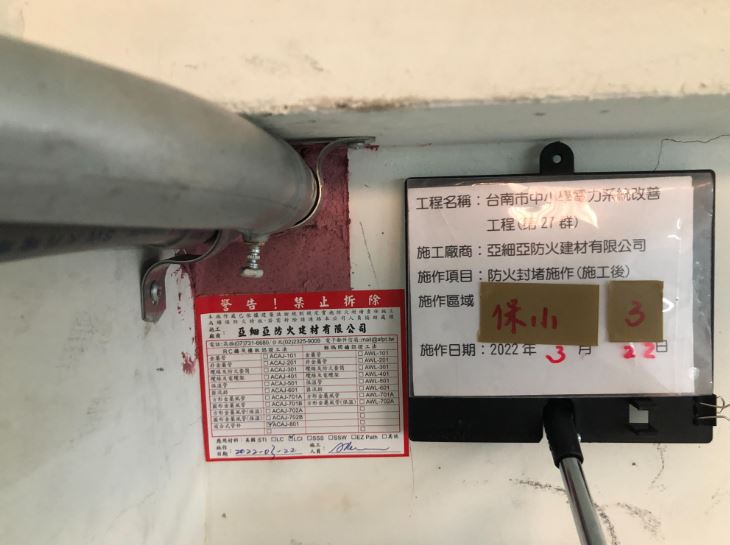 台南市中小學電力系統改善工程(第27群)防火封堵施作