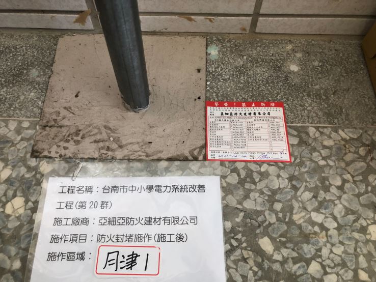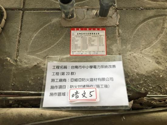 台南市中小學電力系統改善工程(第20群)防火封堵施作