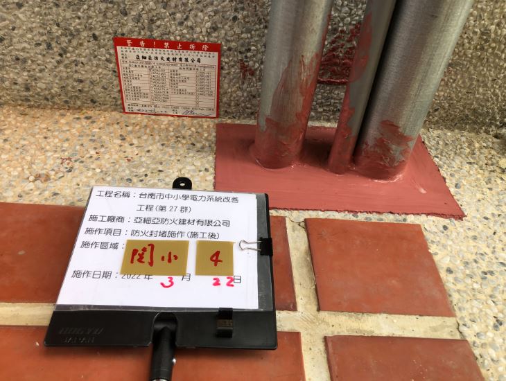 台南市中小學電力系統改善工程(第27群)防火封堵施作